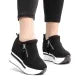 Girls High Heel Wedges Shoes, 4-Inch Canvas with Zipper Lock, Height-Increasing for Women