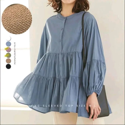New stylish 2 layers frill linen top shirt for firls/women